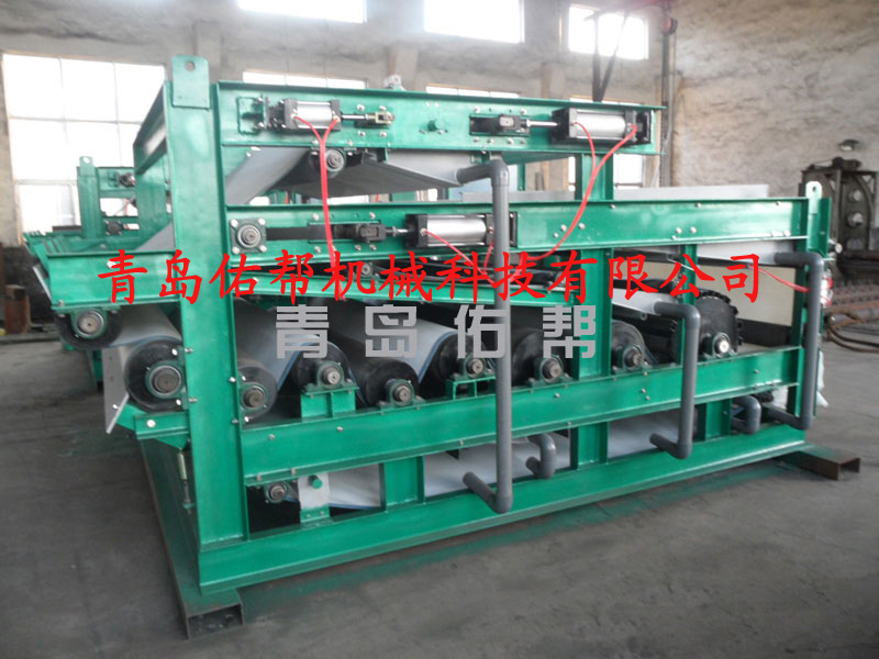 QYDYJ帶式壓濾機(jī)作為污水處理的配套設(shè)備,可將氣浮處理的浮渣或沉淀池的污泥壓濾脫水,壓成泥餅。該壓濾機(jī)還可以用于漿料濃縮、黑液的提取等工藝。