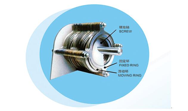 2、固定環(huán)和游動(dòng)環(huán)之間形成的濾縫以及螺旋軸的螺距從濃縮部到脫水部逐漸變小。